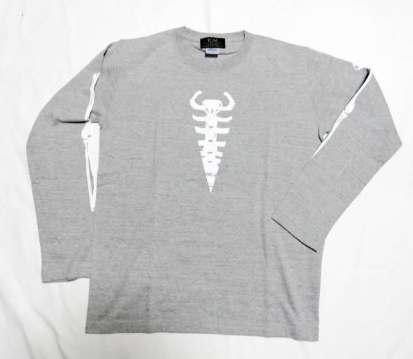 - ボーン骨スカル骸骨TシャツTCM(鎖骨有りV)no2ロンTグレイM