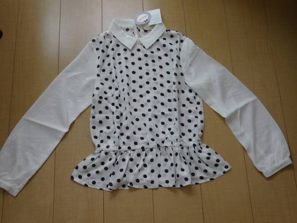 - た:新品未使用★白×黒ドット柄襟付きブラウスチュニック★M