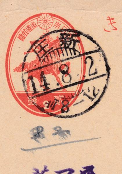 - t2580★櫛型印/新庄14.8.2/楠公葉書