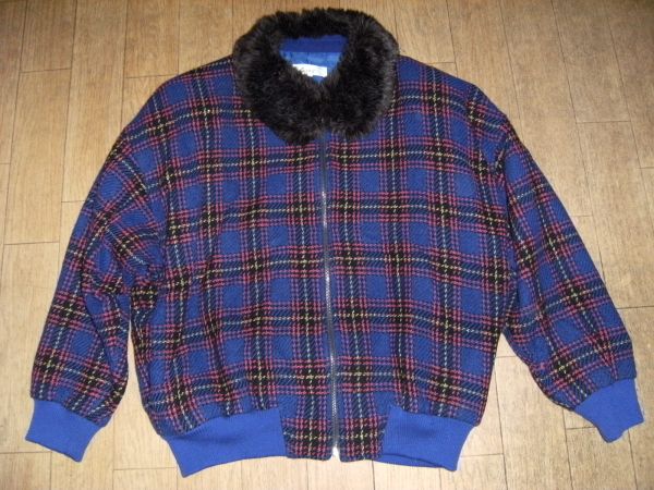 - 昭和レトロ,日本製/レナウン チェック柄 毛糸 ジャンパー お洒落