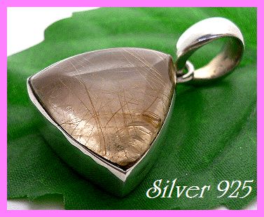 - シルバー925銀の天然石ルチルクォーツ トライアングル ペンダント
