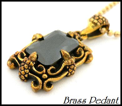 - 真鍮製Brassレクタングル 多面カット オニキス ブラス ペンダント