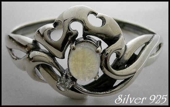- シルバー925純銀 天然石ムーンストーン&ジルコニア付スパイラル バングル/1点限り