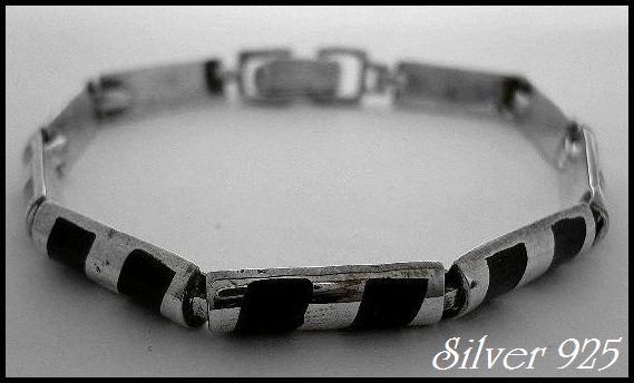 - シルバー925純銀オニキス ストライプ シリンダー silverブレス/1点限り