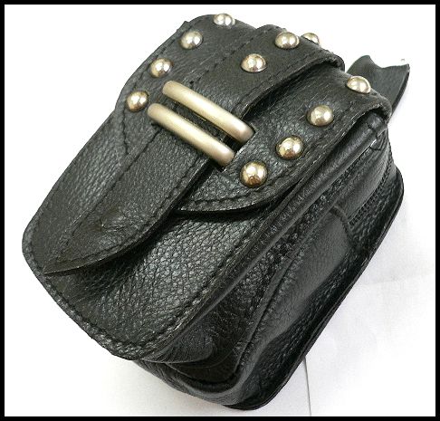 - 牛革2ポケット スタッズ 小物ケース黒 ベルト通しtype/ウエストバッグ/タバコや携帯の収納に