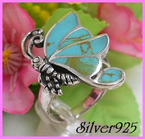 - シルバー925銀のターコイズ入り ちょうちょ 蝶 リング/15号ラスト1個/ALL50%OFF