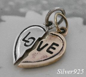- シルバー925銀のツートン LOVEハート ペア ペンダントset/ストラップにも◎