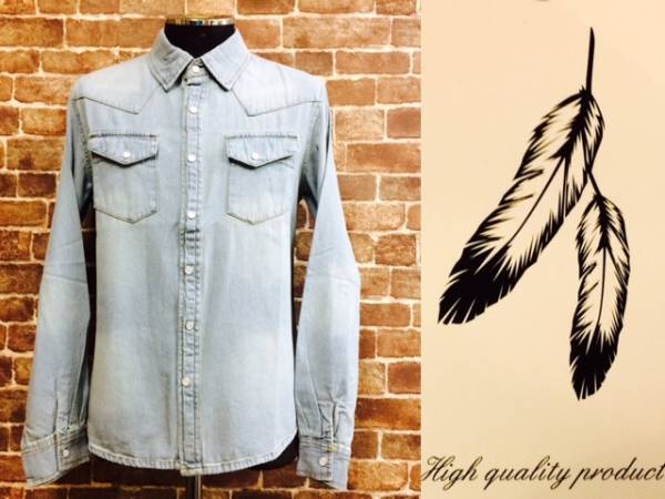 > ★表記M/新品!タイト.High quality product.ユーズド加工デニムウエスタンシャツ.色落ち◎.アメカジ.RUDO.ルード系バイカーサーフスタイル