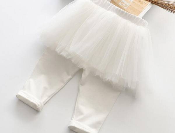 - 子ども服/キッズ服/ベビー服 スカート付きレギンス チュールギャザースカート★ホワイト★春夏カジュアル/パーティ ★100cm