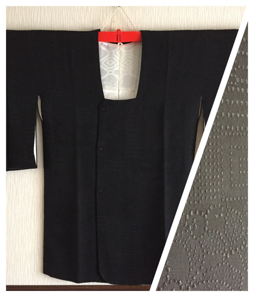 - 【黒の道行コート】正絹 袷 コート丈81cm 凹凸のある生地になります 躾けあり