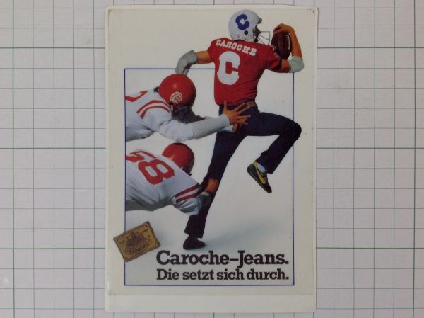 - 外国 古いステッカー:Caroche(半透明)デニム 広告 アメフト デザイン ビンテージ +Db