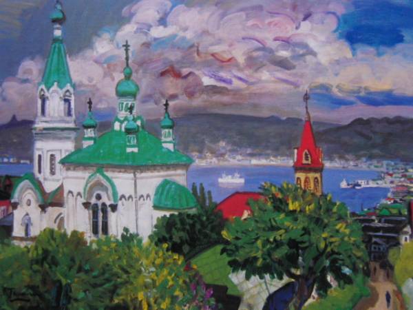 - 田村 孝之介、新緑の函館、希少画集画、高級新品額・額装付、状態良好、送料無料