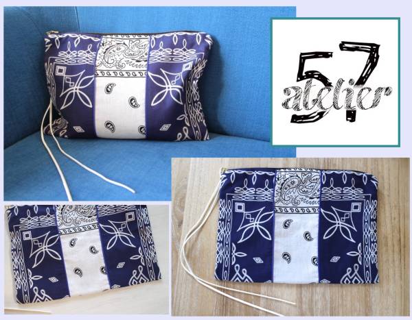 - atelier57 ネイビー×ホワイトカラー バンダナ クラッチバッグ バイカラークラッチ BAG マリンカラー DEUXIEME CLASSE アパルトモン ハワイ