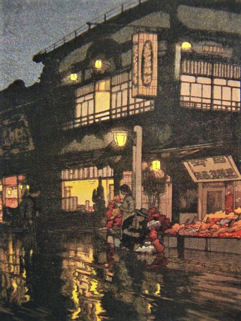 - 吉田博、【東京拾二題 神楽坂道 雨後の夜】、希少画集画、高級新品額・額装付、状態美麗、送料無料