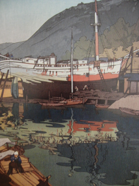 - 吉田博、【木の江】、希少画集画、高級新品額・額装付、状態美麗、送料無料