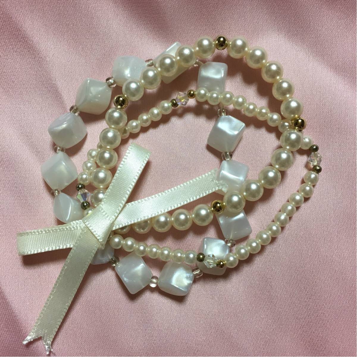 - パール3連ブレスレット☆美品!結婚式パーティーにも!Perl bracelet