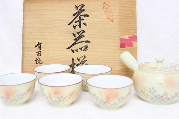 - 未使用品★有田焼 茶器セット 湯呑み5客 箱あり管理1709 K-14