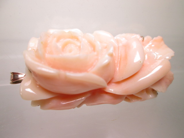 - ☆本珊瑚薔薇彫刻のペンダント兼ブローチ 12.05g