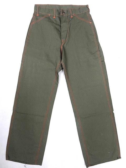 - ビンテージ 40S~50S 希少 デッドストック リベット 股リベ ドーナツ ボタン HBT 緑 グリーン ワーク パンツ レア ヘリンボーン オレンジ