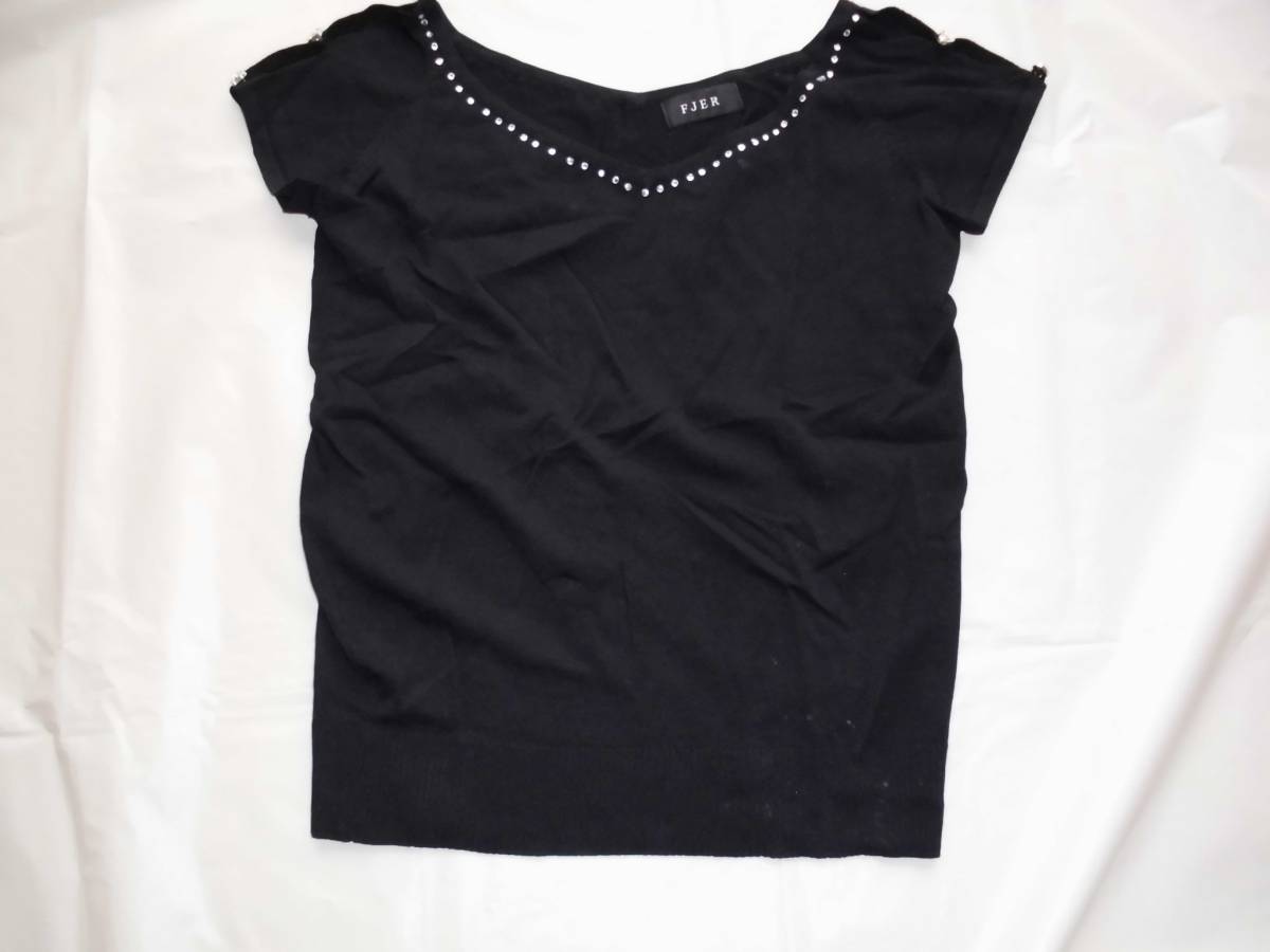 - 肩のハートボタン&キラキラ&肩オープンが可愛い★Mサイズ★黒の薄手Vネック★少し難ありですが★