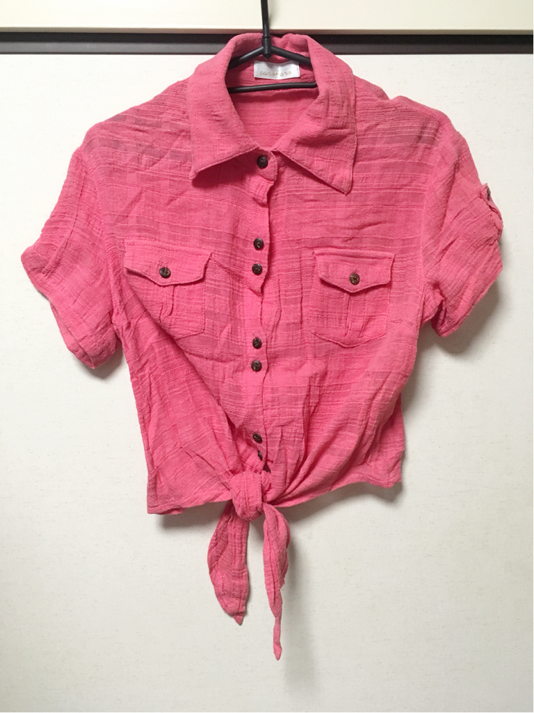- 新品 半袖 ヘソ出しシャツ ビビッドピンク ポップ