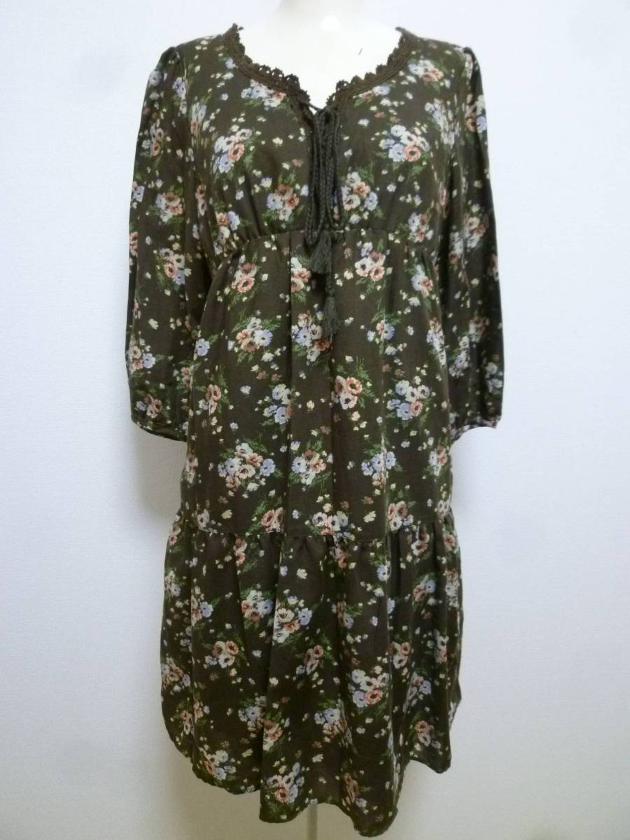 - anyFAM/エニィファム♪濃茶花柄胸リボン裾フリルワンピース2/ブラウンオンワード樫山薔薇バラ♪215