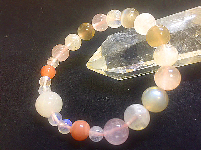 > 宝石質最高級 レインボー&ピンクシーラ ムーンストーンブレスレッド デザインブレスレット 天然石 パワーストーン 女性のお守り