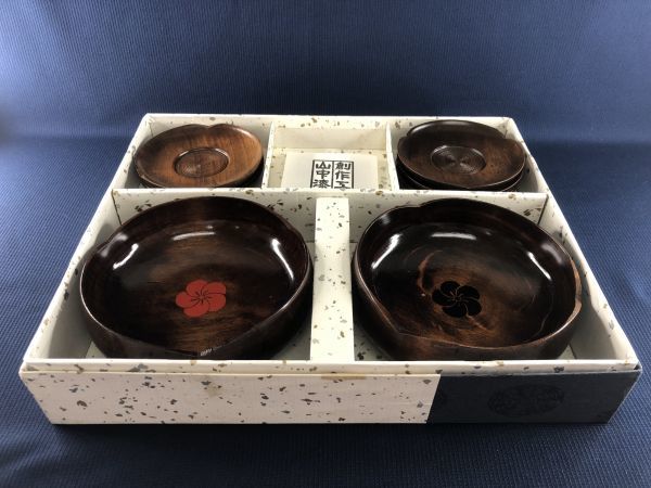 - 未使用品★ 高級美術漆器 山中漆器 茶托 5枚 中鉢 2客 セット 漆器 漆 箱あり管理1805 K-6