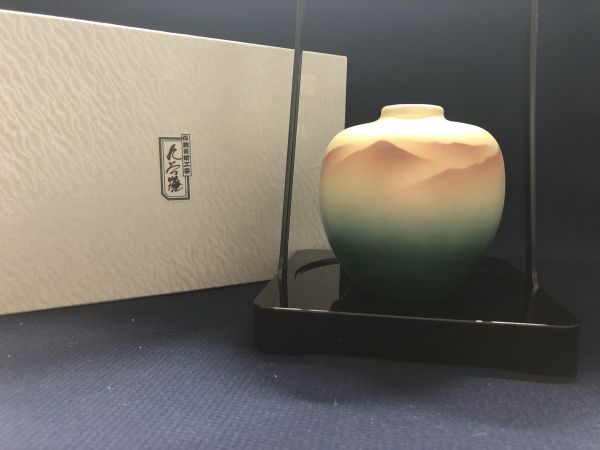 - 未使用品★伝統工芸 九谷焼 一輪生 台付き 連山 一輪挿し 壺 美術九谷焼 箱あり管理1802 H-5