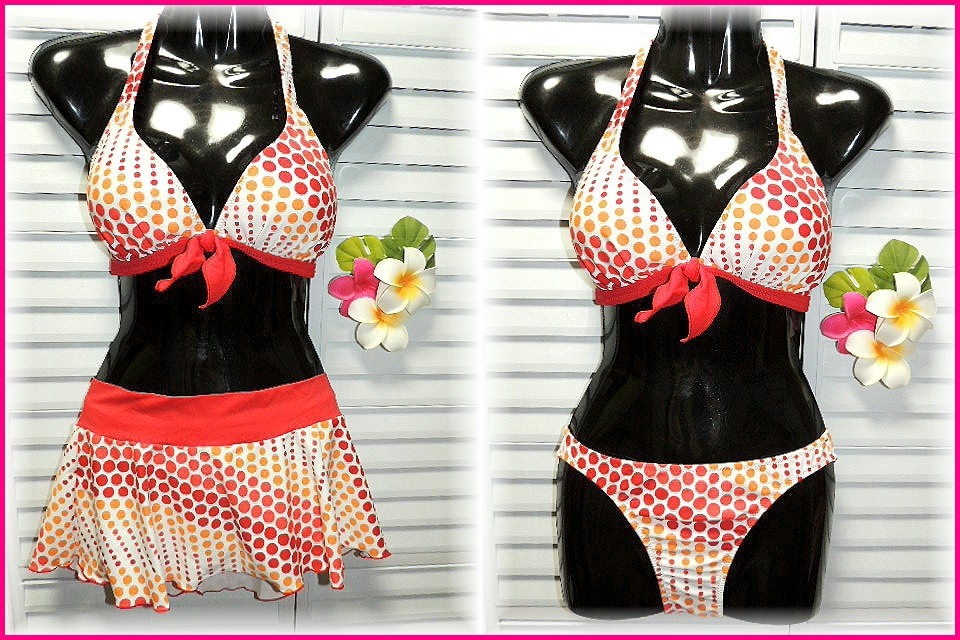 - トータスイレブン 日本製 セパレート水着スカートセット 9号/M ホワイト地×ドット
