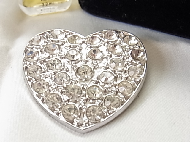 - 訳あり安価 ハートのモチーフ ハート型 煌めくジュエルストーン ブローチ▽