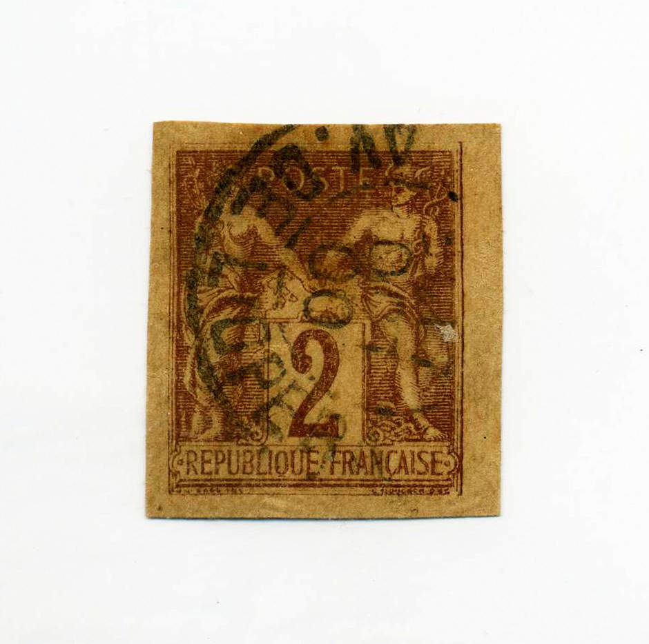 - フランス 1877年◆ 平和と通商 無目打ち imperf 2c ◆Scott# 88b 済 1種 ◆送料無料◆zh-142
