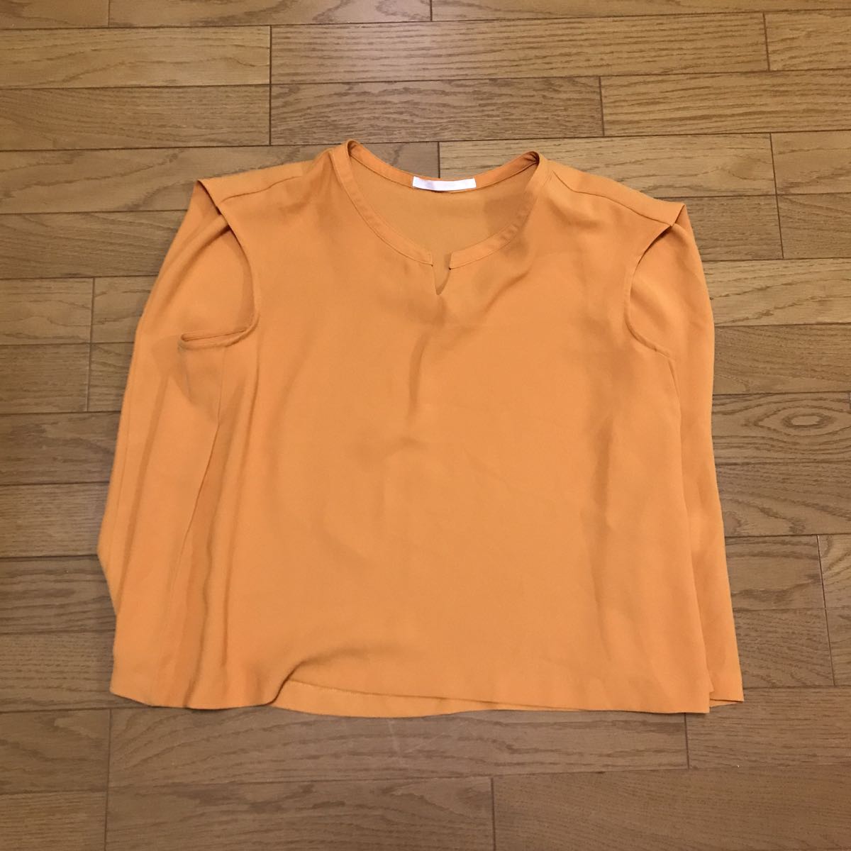 - tinks krow ティンクスクロウ カラシ色 ノースリーブ デザイン カットソー プルオーバー サイズ38 ゆったりとしたデザイン