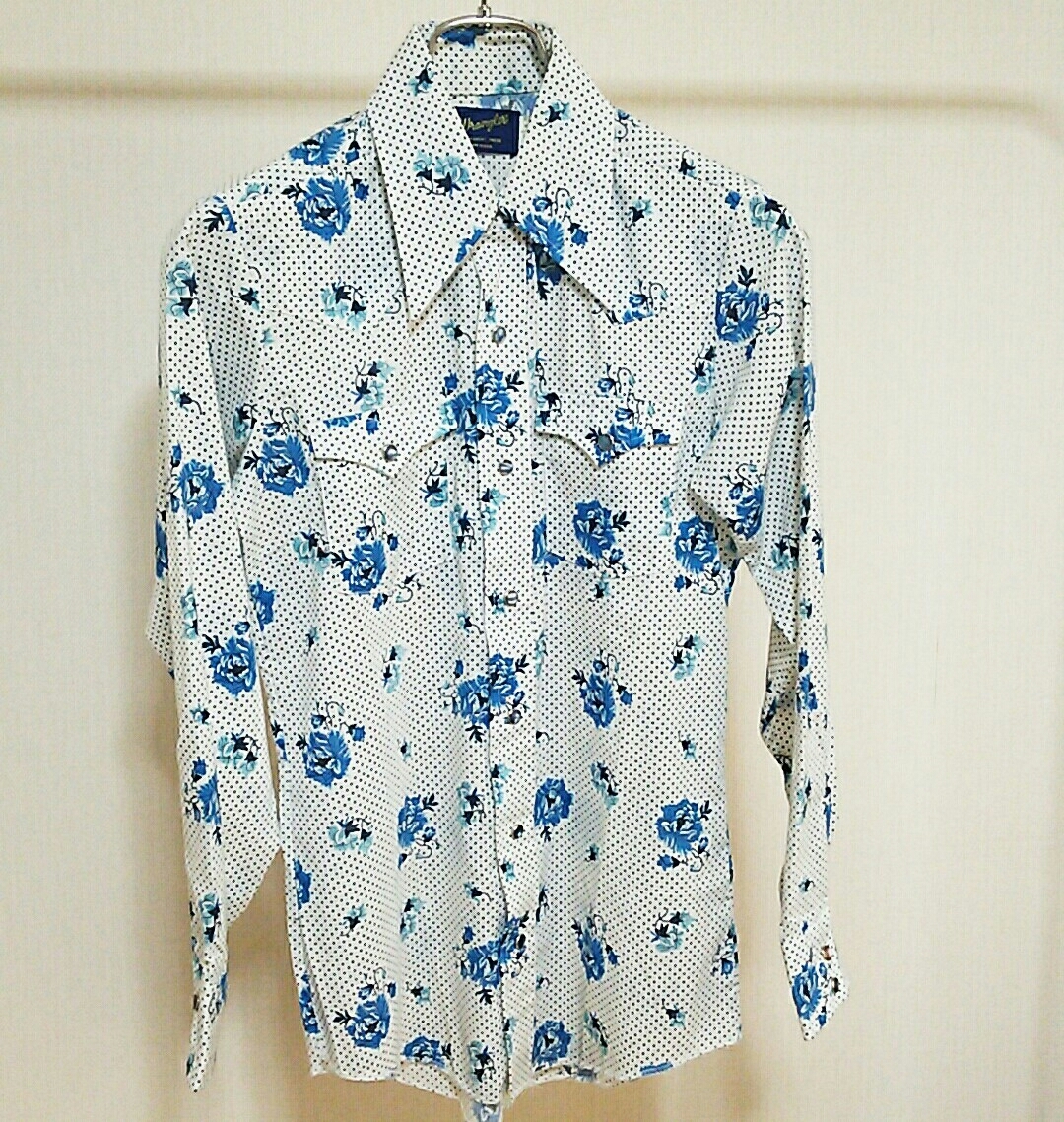 > WRANGLER ラングラー ウエスタンシャツ 花柄 ホワイト ブルー 70年代 70s Vintage 古着 USA製