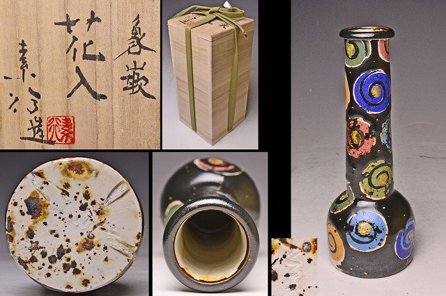 - 坂本素行 ★ 象嵌花入 ★ 共箱 ★ ポップアートの様な色使いが楽しい逸品 ★