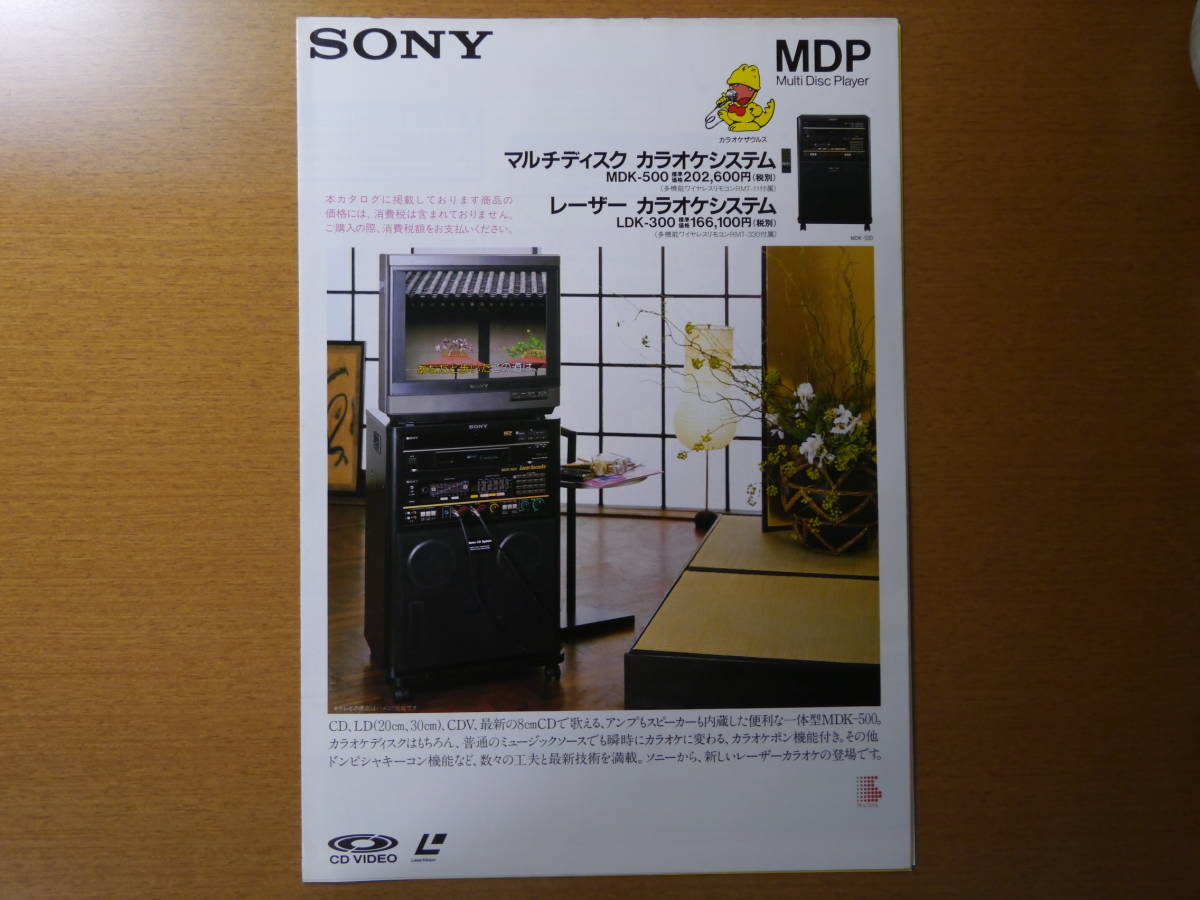 - SONY ソニー マルチディスク カラオケシステム MDK-500 レーザー カラオケシステム LDK-300 カタログ 1989/4