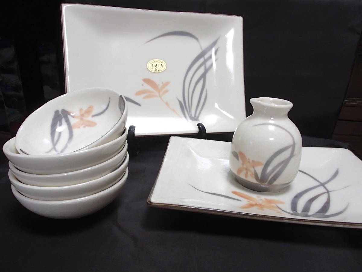 - 【お蕎麦・天ぷらセット】【四日市・万古焼】手描き・・・春蘭・・・品良し・・・乳白色 未使用・箱なし・美品
