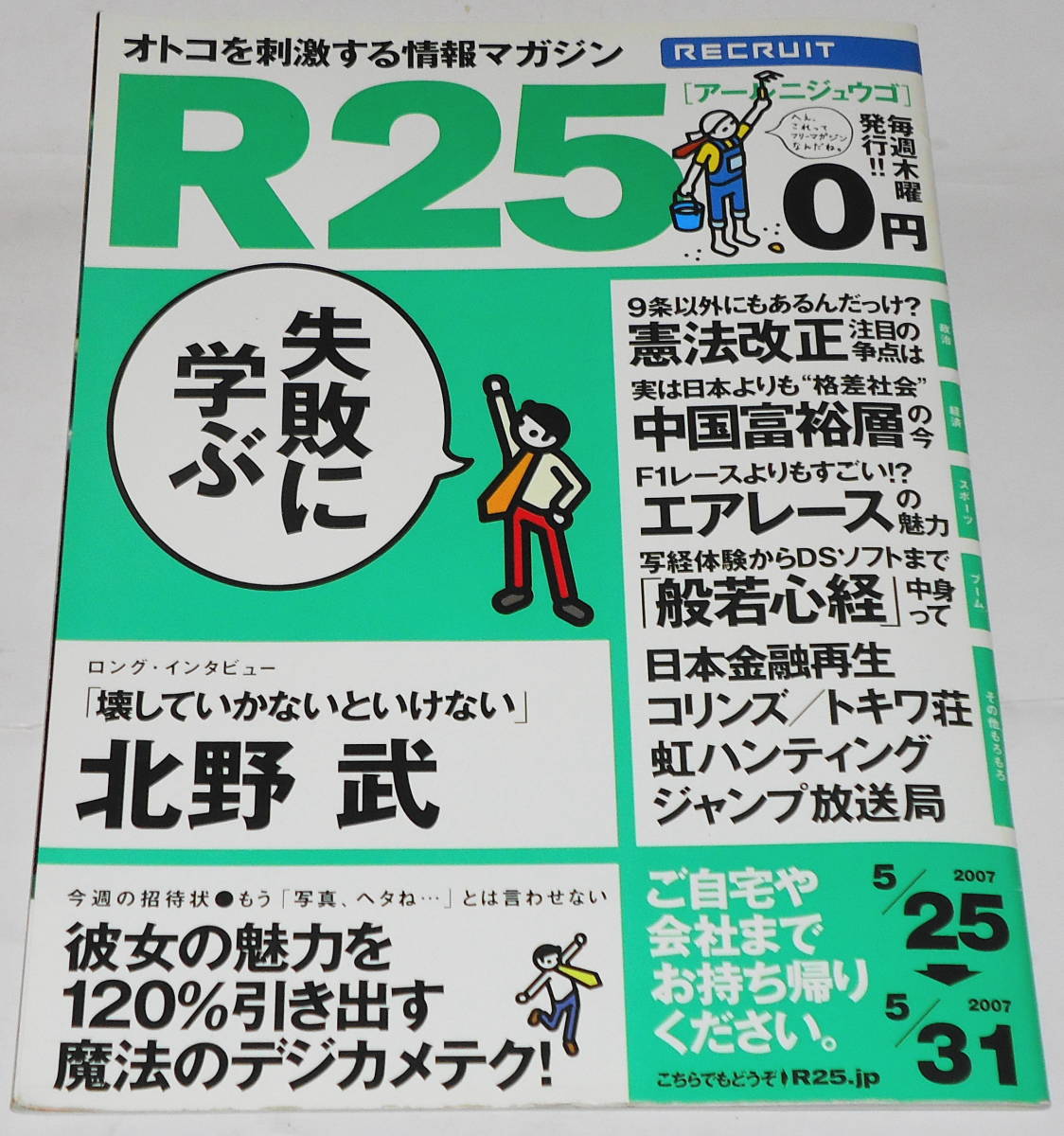 > 送料無料 非売品 R25 2007.5.25 No.143 北野武(ビートたけし) 加藤美佳 高橋秀実 さくまあきら リクルート