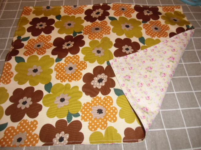 - No.201 裏付ランチョンマット ハンドメイド 35x45 茶系北欧花柄