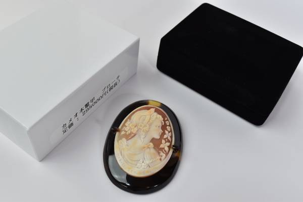 - お洒落高級品 カメオ 本亀甲女性像ブローチ レディース用 総重量21g 美品
