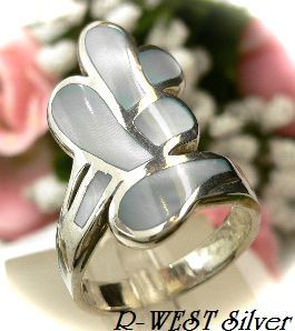 - シルバー925銀のシェル貝殻入り リングtypeK[ブルー]11号ラスト1個/シルバージュエリーALL50%OFF