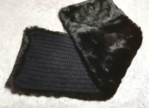 > 黒ブラックふわふわあったかタートルネックニットストール/マフラー Black fluffy turtleneck knit stole