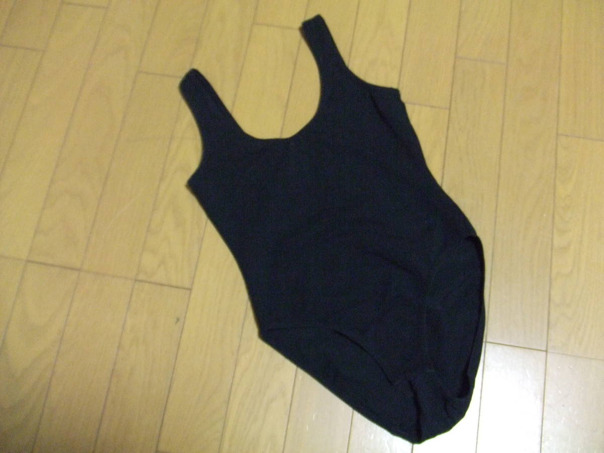 - シンプル★無地 黒 ワンピース水着 股部分開閉ボタン付き サイズM #23