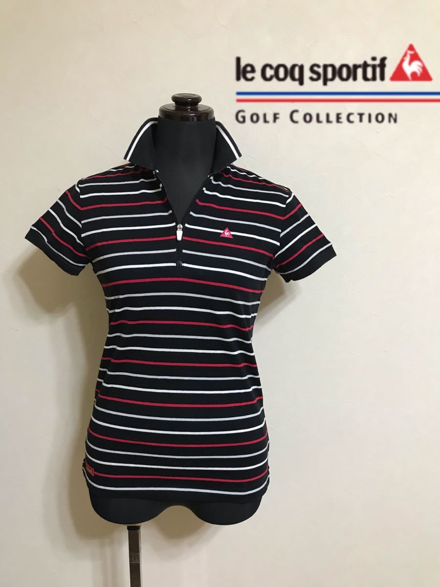 > le coq sportif GOLF COLLECTION ルコック ゴルフ レディース ボーダー ハーフジップ ウェアー プルオーバ サイズS 半袖 デサント トップス