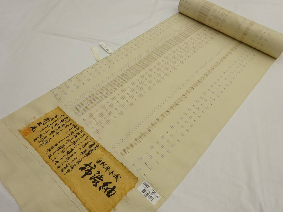 - 新品・正絹・反物★新潟県・十日町・粋渋庵製・柿渋紬着尺★生成り地に縞柄です