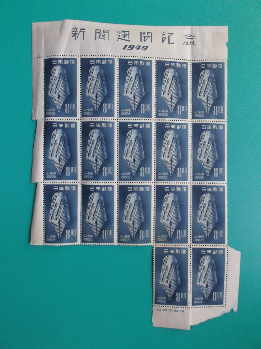 - 題名入り記念切手 17B 銘版付き 新聞週間 1949.10.1