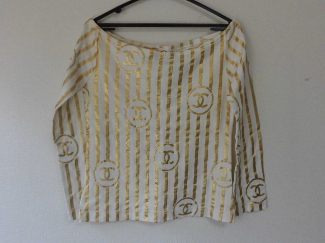 - ●Rei レイ/ゴールド金箔/ライン&アイコン/ 肩見せデザイン/長袖カットソー/M/パロディシャツ