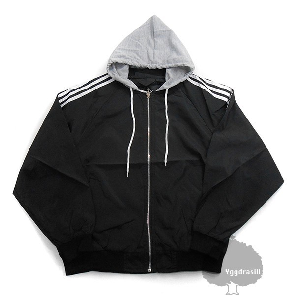- YGG★新品 3ストライプ ナイロンジャケット ブルゾン 黒 ブラック L メンズ ライン入り アウター
