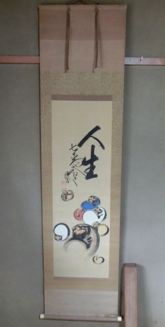 - 掛軸■達摩 人生 七転び八起き だるま 絹本 肉筆 箱入り 古美術 時代物 骨董品■③
