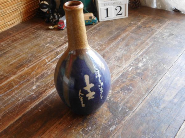 - 酒瓶 涙 笑い 徳利 十六人生 酒よ 青 11X24CM ボトル